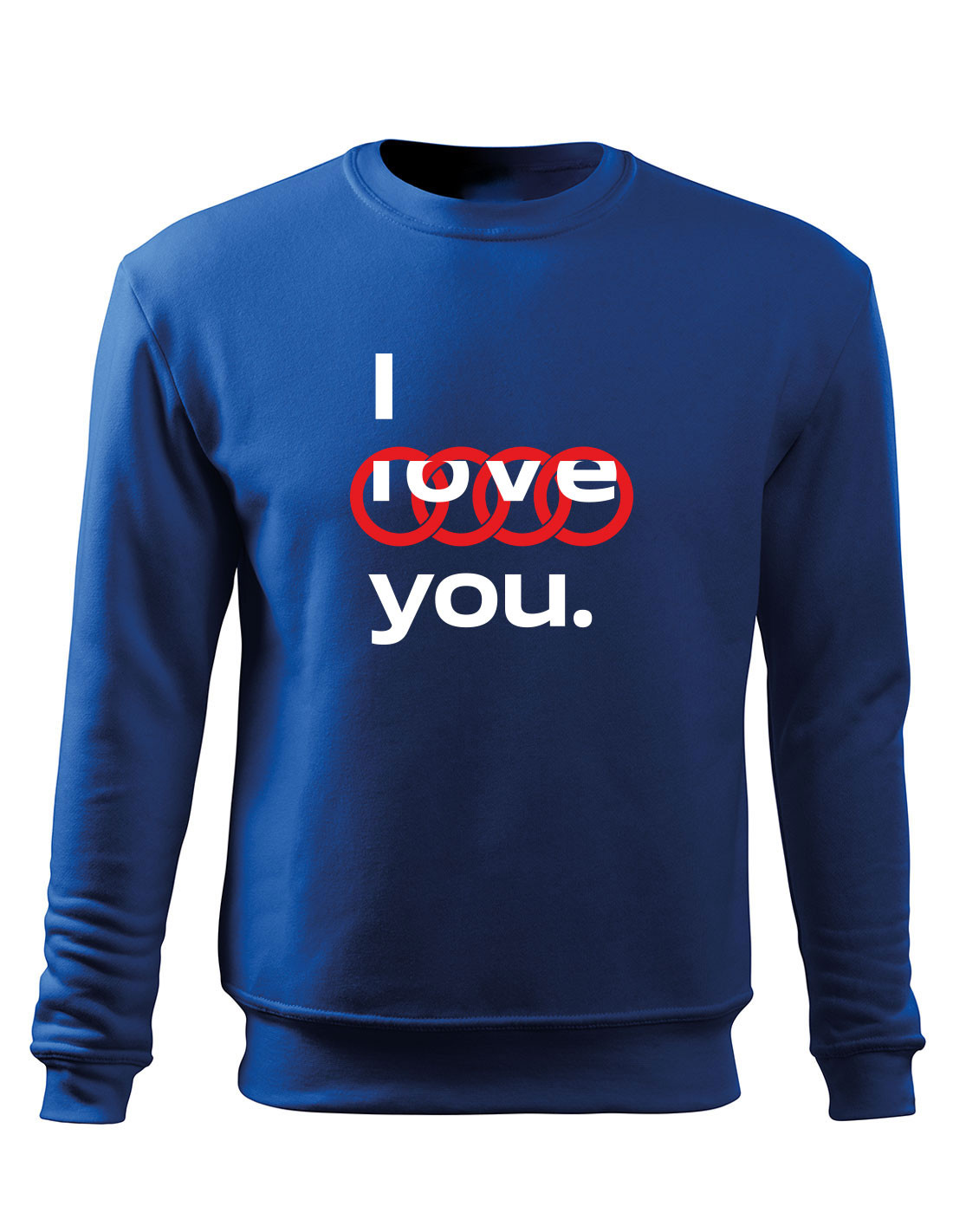 Pánsky pulóver s auto-moto potlačou audi loga s napisom I love you audi.