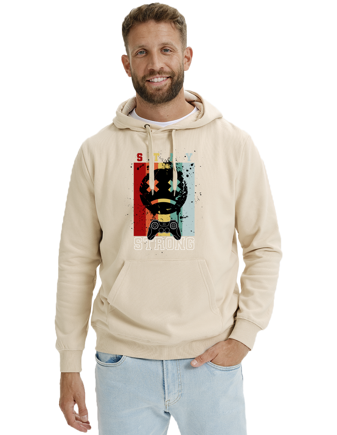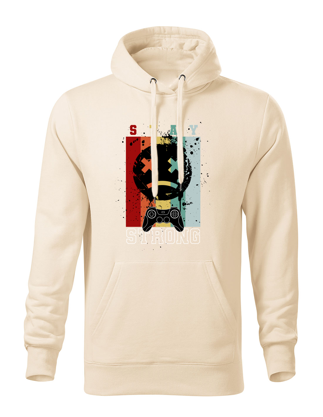Mikina Stay Strong nie je len kusom oblečenia. Je to vyjadrenie odolnosti pre hráčov ako aj každodenných bojovníkov. Unikátny grafický motív s herným ovládačom v retro farbách vytvára vizuál, ktorý vyčnieva z davu.